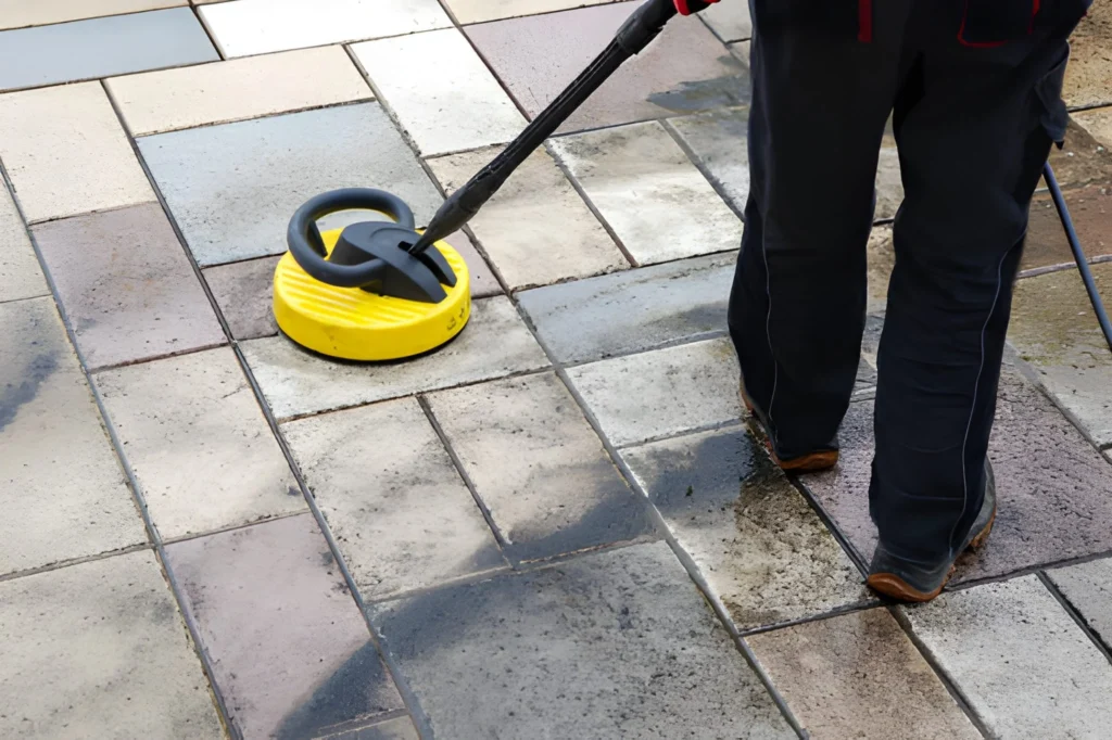 تنظيف وتلميع الأرضيات الخارجية يزيل الأتربة والجراثيم العالقة، مما يحافظ على بيئة صحية.